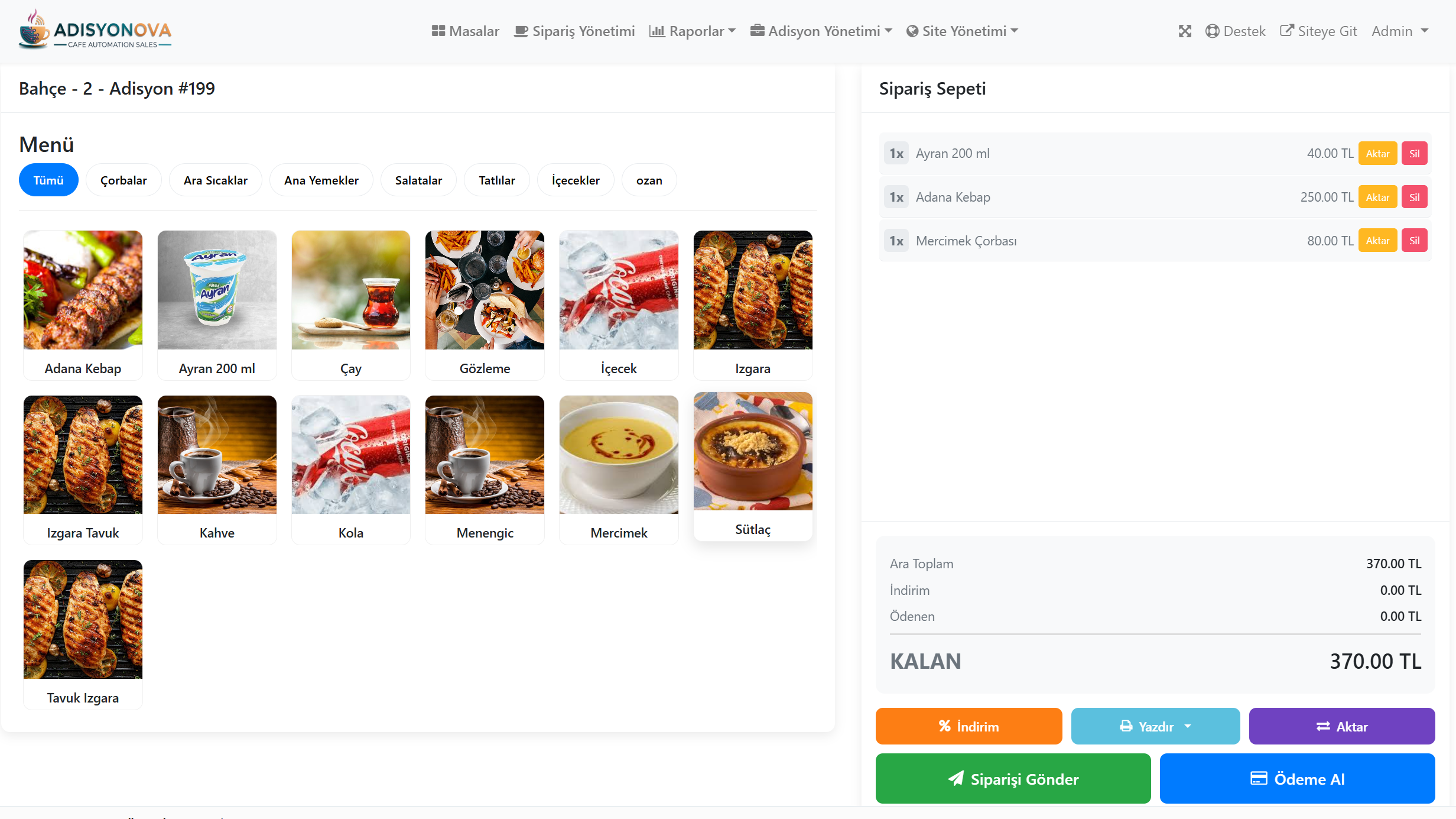 Adisyonova, restoran ve kafe işletmelerinizdeki tüm operasyonları kolayca yönetebileceğiniz Bulut Tabanlı POS sistemidir. Diğer adisyon programlarından farklı olarak, eğitim ve kurulum gerektirmeden hızlıca üye olabilir, ürünlerinizi tanımlar ve birkaç dakika içinde sipariş almaya başlayabilirsiniz. Adisyonova ile işletmenizin verimliliğini artırın, her yerden erişim sağlayın ve süreçlerinizi dijitalleştirerek zaman ve maliyet tasarrufu elde edin.